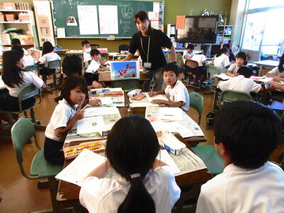 10月1日、図工室にて2年1組の図工の研究授業を行いまいた。題材は「コスモス」で、「花や葉の特徴をしっかり見て描こう」というめあてでした。図工は1年から6年まで専科の先生が授業をされます。図工のプロフェッショナルな先生です。いろいろなコスモスの写真をもとに描くのですが、さて、40人の子供たちに、どのようにしてコスモの絵を描かせますか?その方法ですが、「やってみせ、言って聞かせて、させてみせ、ほめながら書かせる」という指導方法でした。描かせる技法もすごいのですが、「ほめる」が更にすごいのです。私が参観している間だけでも15パターンの誉め言葉を子供たちに自然とかけておられました。どの子も上手にコスモスの花を描いていて、どの子も満足そうでした。町の文化祭で展示されますので、是非ご覧ください。