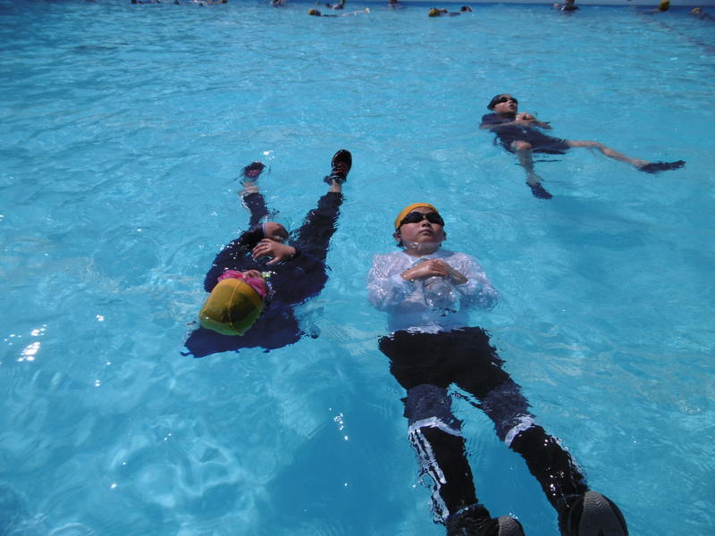 今回の学習では、服や靴を身につけると水中で動くのが難しいことがよく分かりました。また、背浮きをしたり、身近な物(ペットボトル、レジ袋)を投げ入れて救助できること等も学びました。今回の学習を生かして、命を守るためにどうしたらよいかしっかり考えて、生活していって欲しいと思います。