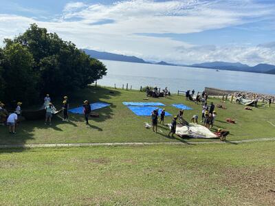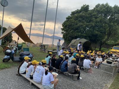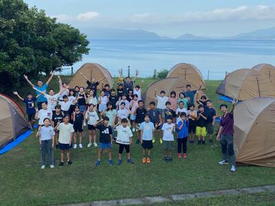 9月19日、最終日(3日目)の朝7時、テントの中を片付けた後、全員で集合写真を撮りました。海を見下ろせるキャンプ場に、友達と一緒に泊まった経験は、かけがえのないものになったことでしょう。キャンプは、自然を楽しみ、不十分さを楽しむ活動です。だからこそ「人間性」が高まるのです。子供たちがたくましく見えました。