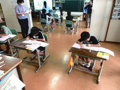 9月24日、たんぽぽ2教室で国語の研究授業を行いました。たんぽぽ学級は、人数は少ないですが、2つの学年が同時に学習することもあります。だからこそ「わたり」という学習方法が必要になります。担任の先生が1つの学年に関わっている間は、自分たちで学習を進めるのです。今回の研究授業の一番のポイントでした。6年生だけでなく2年生も、自分たちで授業を進めていました。先生がいない時間に、しっかりと、考えを書いたり、考えを話し合ったり、問題を解いたりしていました。日々の積み重ねです。とても感心しました。