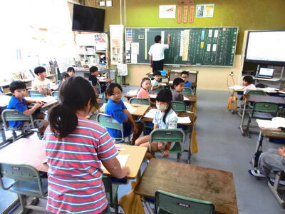 9月30日、3年2組で国語「ちいちゃんのかげおくり」の研究授業を行いました。授業前から一番関心を持っていたのが、「二者択一の発問」でした。髙橋先生と子供たちは「5の場面は必要なのか?必要ではないのか?」という発問について、立場を決めて、理由を伝え合いながら深めていました。二者択一の発問では、立場や理由を考える時に、「ん?」「どっちかなあ!」と一旦思考が止まります。この時が、「脳が汗をかく」状態です。これこそが学びだと思っています。3年2組の子供たちの脳は、しっかり汗をかいていました。