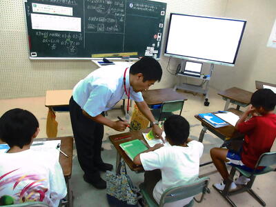 10月9日、今日から第2弾「見に来てください週間」が始まりました。たんぽぽ3教室で「分数と小数・整数の関係」の研究授業を行いました。一番感心したのは、45分の学習の集中力で、3人で300%の集中力でした。例えば、「先生や友達の話をしっかり聞くこと」、「間違えることを恐れずじゃんじゃん発表すること」、「すでに習ったことを生かして新しい学びに挑戦すること」などです。とても難しいところですが、先生が、5つの問題をスモールステップで解かせていたことも、集中力の大きな要因でした。「易から難へ」小さな成功を積み重ねていく姿と300%の集中力に、子供たちの大きな成長を感じました。