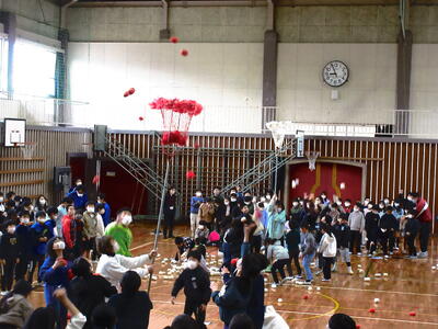 3月6日、途中から雨予報の中でしたが、お別れ遠足を行いました。1時間目は西小体育館でお別れ集会を行いました。下の写真は2年生の出し物で、「2年生VS6年生の玉入れ大会」の様子です。6年生の勝利でしたが、2年生の感謝の気持ちがたくさん入った出し物でした。このように各学年、バラエティーに富んだ、ユーモアたっぷりの6年生への出し物を、感謝の気持ちを込めて披露しました。もちろん6年生も在校生へお礼の気持ちを込めて楽しい楽しい寸劇で表しました。西小の伝統の1つ、「盛り上がった方が素敵な場面で、精一杯盛り上がれる力」をた~くさん見せてもらいました。