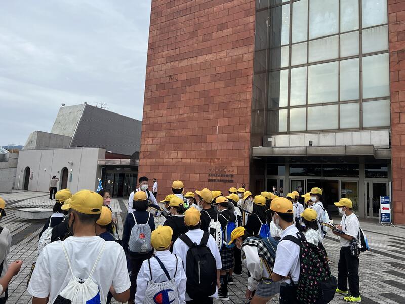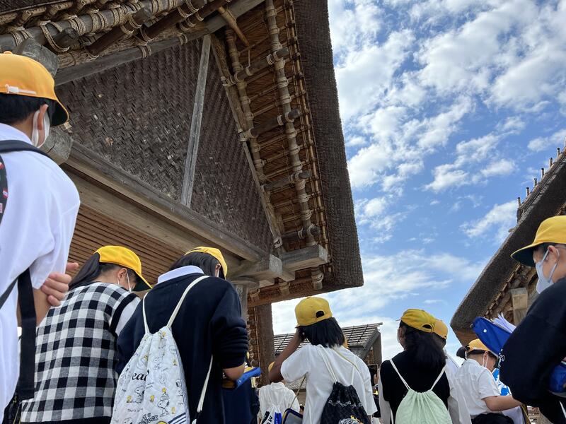 吉野ヶ里遺跡に来ました。当時の人々の生活の様子が伺えます。写真は高床倉庫を見学している様子です。