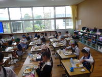 24日(金)から給食試食会が始まりました。今年は3回に分けて実施する予定です。24日は、1年生と6年生の保護者のかたが来られて子どもたちと一緒に給食を食べられました。第一小の給食はおいしかったでしょうか?(教頭 米澤)