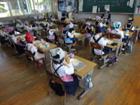 1年生では、漢字の学習が始まっています。4月に入学して「ひらがな」「カタカナ」と一文字ずつ覚えてきましたが半年でもう漢字び入りました。今日は「目」「月」「上」などの漢字を学習していました。ちょうど「仲秋の名月」の日に「月」の漢字を覚えました(教頭 米澤)