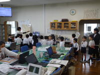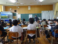 学校では、教職員の授業を互いに見合ってどのよな指導していけば子どもたちに力がつくかを議論しています。今日は、5年生の辻先生の授業を全職員で参観しました。5年生では、ICTを駆使した社会科の学習が行われて先生方も非常に参考になったことと思います(教頭 米澤)
