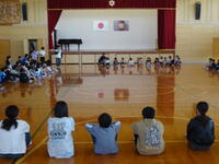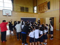 本校では、10月21日に芸術鑑賞会として劇団「銅鑼」さんによる演劇を鑑賞する予定です。その事前ワークショップとして、数名の劇団員さんと演出家さんが本校に来られ4・5・6年生と一緒にワークショップを行いました。最初は見えない縄をなわとびしているように跳んでみたり、笑顔をテーマにした場面を写真に切り取る活動等日頃はできないたくさんの活動をすることができました。当日の演劇では児童代表10名程度が一緒に出演するということですが今から楽しみです。(教頭 米澤)