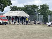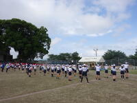 今年も、県内のアメリカンフットボール「熊本マーベリックス」の吉村さんに来ていただいてフラッグフットボールの指導をしていただいています。2年目ということで、吉村さんも学校の雰囲気や子どもたちのこともある程度把握されておられるし、子どもたちも安心して指導を受けています。(教頭 米澤)