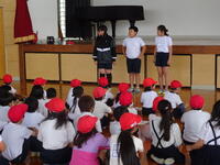 今日の児童集会では、図書委員会さんの発表がありました。月に関する特大絵本の読み聞かせや月に関するクイズなどがありました。子どもたちも読み聞かせに集中して聞くことができました(教頭 米澤)