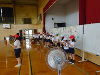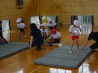 夏休み明けもまだまだ暑い日が続き、運動場や体育館での体育の授業はまだ熱中症の心配もあります。今の時期第一小ではほとんどの学年がプレイルームでマット運動を行います。冷房の効いたプレイルームなので熱中症の心配もすることなく体育の授業も行えます。第一小の特権ですね。(教頭 米澤)