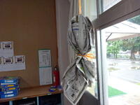 本校はあっちこっちで「クモの巣」が見られ、自分も時々職員室の窓のクモの巣払いをしています。渡り廊下にもクモの巣ができるんですが、昨日戸締まりをしていたらとても立派なクモの巣があったので思わず写真に撮ってしまいました。写真だとその美しさがうまく伝わらないのが残念です。(教頭 米澤)