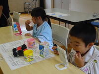 5年生の集団宿泊教室は、夕方から「食事作り」の活動をしました。大きなクドに薪を燃やして羽釜でご飯を炊きました。また、カレーも自分たちで作りおいしいカレーライスができました。文字通り「同じ釜の飯を食う」なかまになりました。同じ釜の飯は様子を見に来られた校長先生も召し上がられました。夜の活動は、天候の都合で館内ナイトゲームを行いました。真っ暗な自然の家の館内を指示通りにたどっていく活動ですが外での活動と同じくらい盛り上がっていました。お手伝いに来ていただいた5年生の保護者の方、先生方ありがとうございました!(教頭 米澤)