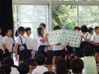 今朝の「朝の活動」は西中生徒によるオンラインでの絵本の読み聞かせがありました。電子黒板ごしではありましたが、中学生が熱心に読んでくれる絵本の読み聞かせを子どもたちも集中して聞くことができました。(教頭 米澤)