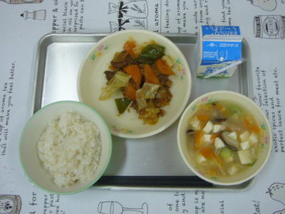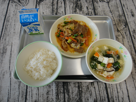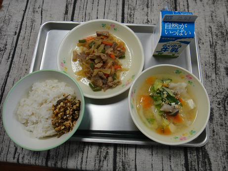 麦ご飯 肉野菜炒め みそ汁 牛乳