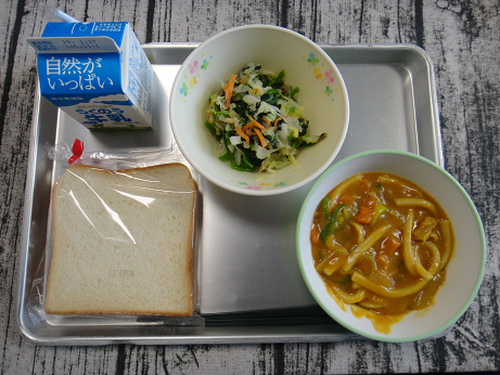食パン カレーうどん ほうれん草サラダ 牛乳