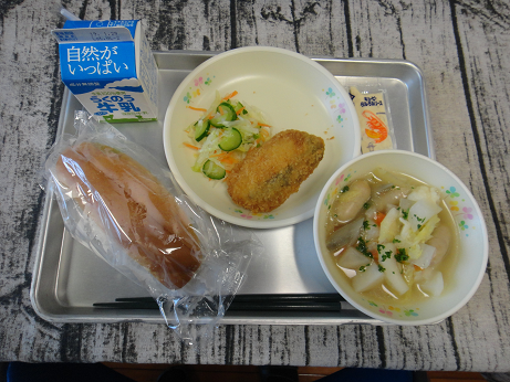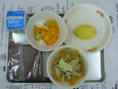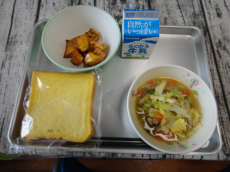 かぼちゃパン 八宝菜 大学芋 牛乳