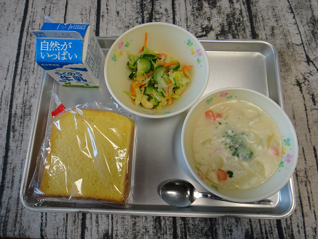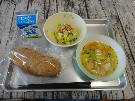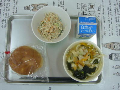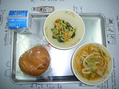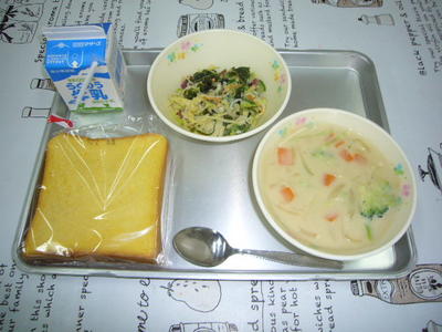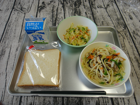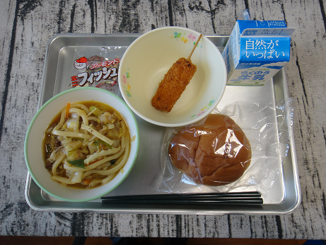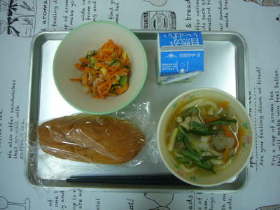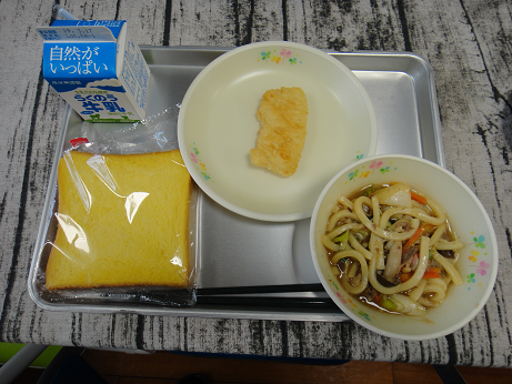 ごもくうどん パインパン ごうぼうサラダ 牛乳