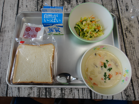 食パン(イチゴジャム) かぶときのこのクリーム煮