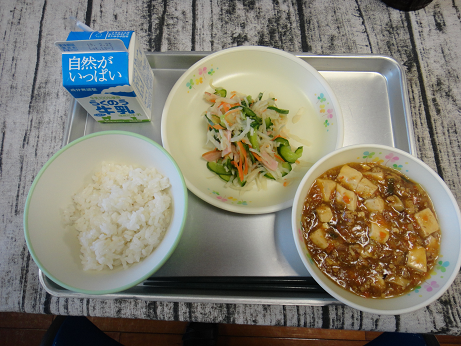 麦ご飯 マーボー豆腐 切り干し大根の中華和え 牛乳
