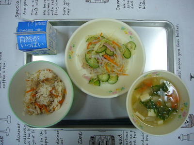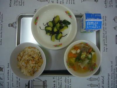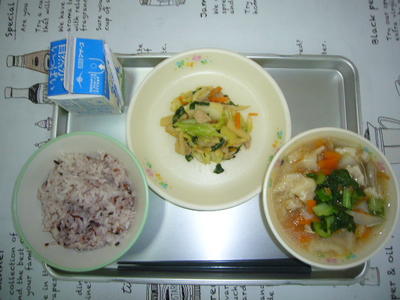 麦ご飯 野菜炒め 味噌汁 牛乳