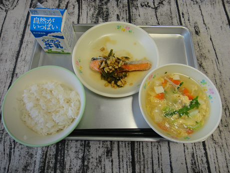 ごはん さばの味噌煮 かきたまじる ごまずあえ 牛乳