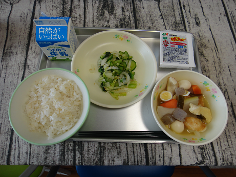 麦ご飯 おでん ゴマ酢和え 納豆 牛乳
