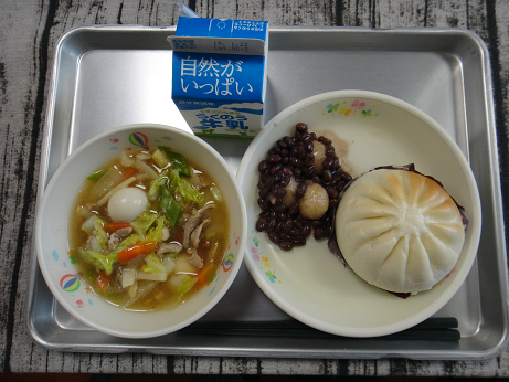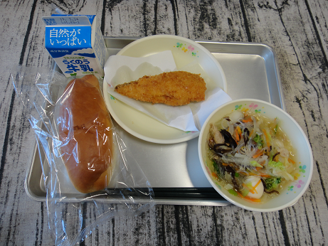 米粉入りにんじんパン ちゃんぽん とうふしゅうまい 牛乳