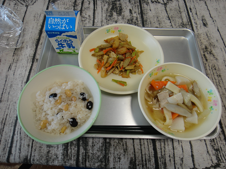 まめまめごはん 武光公鍋 ごぼうのきんぴら 牛乳