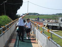 学校付近で行われる道路工事に伴う、歩行者用の仮歩道ができました。24日から工事が始まり通行止めになります。そこで今日の一斉下校時に学校の職員もついて一緒に仮歩道を歩きました。子どもたちは今日は初めての通路で興味津々だったようです。(教頭 米澤)