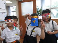 今日の昼休み、突然マスクをつけた子どもたちが職員室にやってきました。2年生が図工の時間に作ったものを見せにきてくれました。とてもかわいいマスクマンの登場に和みました(教頭 米澤)