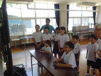今日は全学年でスポーツテストを行っています。ソフトボール投げや上体起こし、反復横跳びなどの計測を行います。先生方はそれぞれの計測があるので1年生と6年生、2年生と5年生、3年生と4年生でグループをつくり自分たちで種目をまわります。3~4人の上級生が10名近くの下級生をしっかりお世話している姿が印象的でした(教頭 米澤)