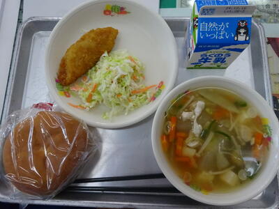 ひのくにパン、しんじゃかのポタージュ、げんきのでるレバー