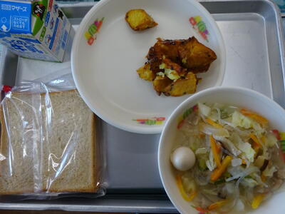 こめこいりにんじんパン、かぼちゃのポタージュ、ハムサラダ