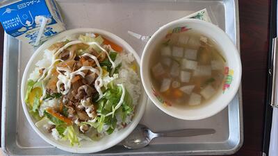 キムチご飯 スーミータン ブロッコリーサラダ 牛乳