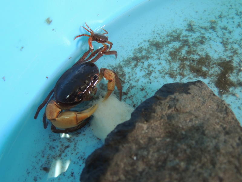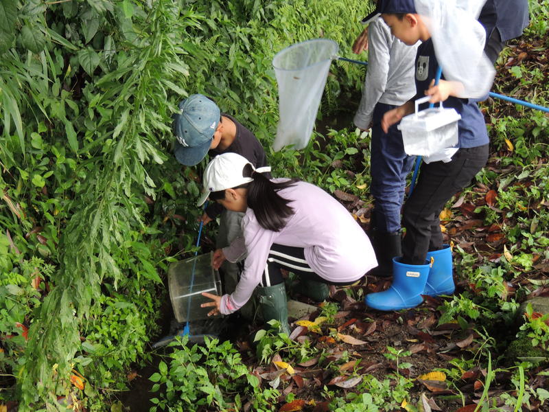 連日、雨が続いていましたが、8日(水)は時折晴れ間もあり、予定通り2年生は生活科の学習で『カニとり』に出かけました。今回は水辺の生き物について学習します。
