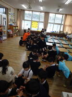 今日は1年生が中央小の1年生と、5・6年生が合志楓の森小学校の5・6年生児童とそれぞれ交流活動を行いました。1年生は民生児童委員さんやボランティアの方と昔遊びの活動でした。5・6年生は合志楓の森小学校の5・6年生と一緒に家庭学習の紹介や外国語の授業をいっしょにしました。それぞれ大人数の子どもたちと一緒に学習することがないので最初は戸惑ったことと思いますが、いい経験になったと思いますなお、5・6年生は合志楓の森小学校で開催されている菊池恵楓園絵画クラブ「金陽会」の作品展の鑑賞もしました。(教頭 米澤)