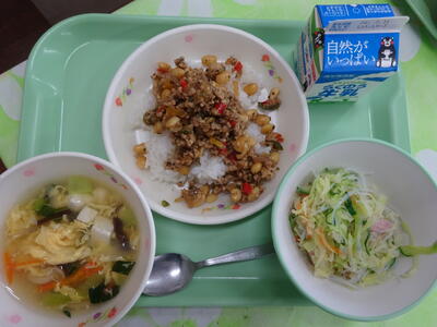 ガパオライス、とうふとたまごのスープ、はるさめサラダ