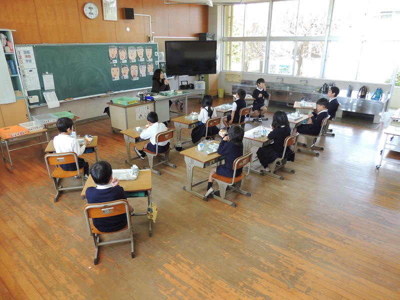 3時間目まで教科の学習や臨時休校中の学習の仕方や生活について学習をしました。そして、今年度最初の給食(簡易)でした。みんなで楽しくおしゃべりしながらの会食とはいきませんでしたが、みんなおいしそうに食べていました。