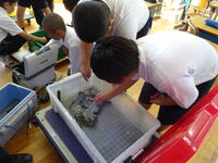 今日は朝から4年生教室にカニがやってきました。このカニは、子どもたちが絵を描くための題材としてやってきたもので担任の小林先生が地元の天草から連れてきました。子どもたちはカニに歓声を上げてしばらく観察していました。この後はダイナミックなカニの絵を描いていました。(教頭 米澤)