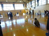 23日(日)に学校の体育館で合生コミュニティー地域づくり運営委員会の「カローリング大会」がありました。校区内各地区で結成したチームでカローリングに挑戦しました。カローリングはカーリングのストーンに車輪がついたものを投げる感じのゲームです。子どもから年配の方まで楽しくできます。(教頭 米澤)