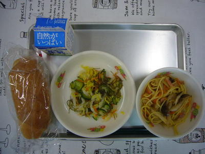 ミルクパン ごぼうのペペロンチーノ フレンチサラダ 牛乳