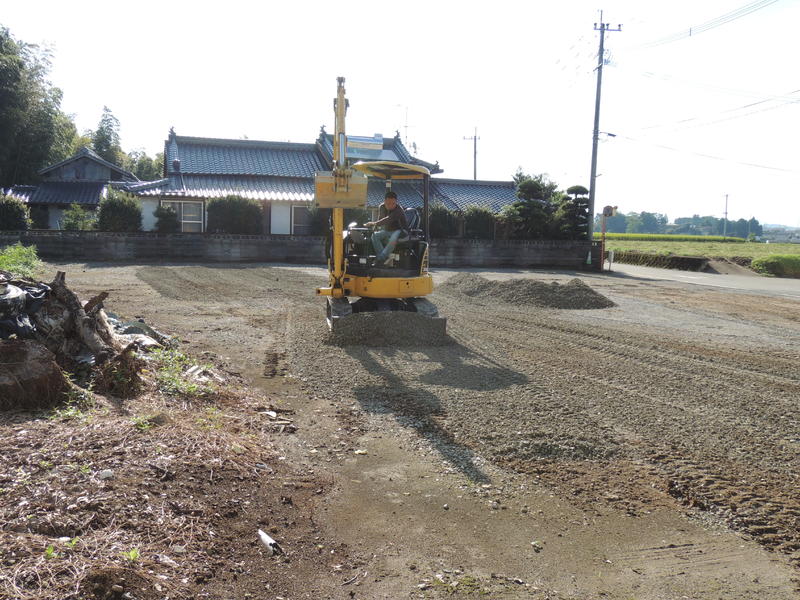 雨天時などは駐車場がぬかるんでおり、ご迷惑をおかけしていました。PTA執行部の方にご相談したところ、田中さん、松永さん、立山さんに整備をして頂きました。