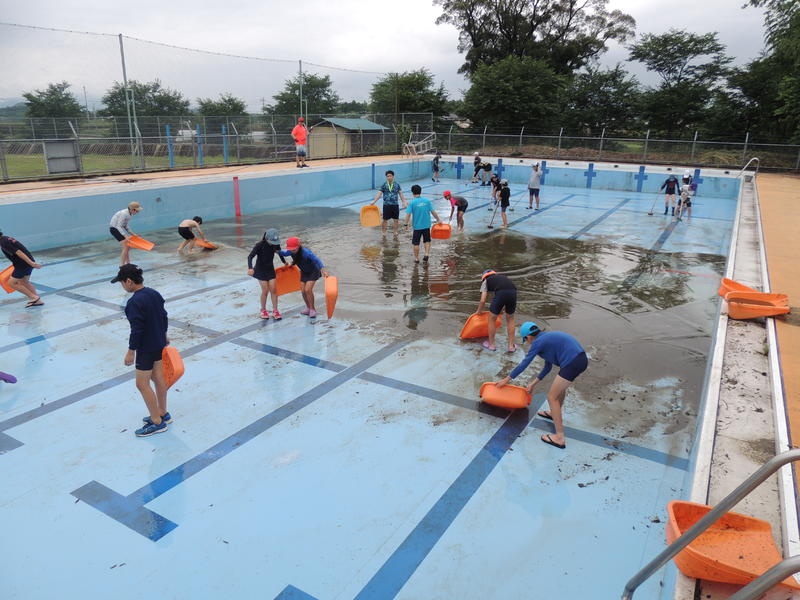 ↓ 5,6年生で大プールや更衣室などの掃除を行いました。