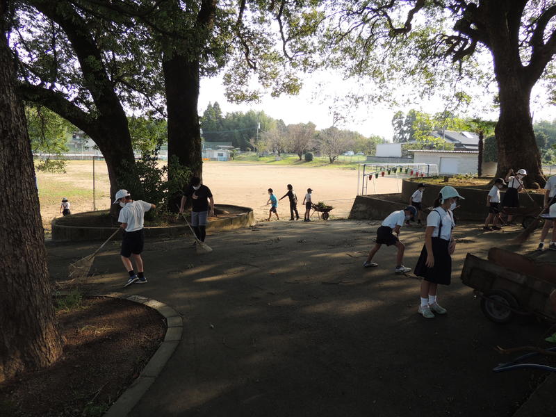 台風10号の接近により7日(月)は臨時休校となりました。4日(金)には児童、職員で万全の備えをしました。