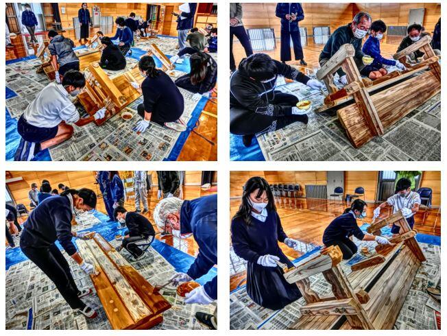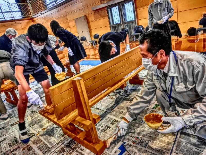 今回「水とみどりの森づくり税」事業として活動した「ベンチづくり」。