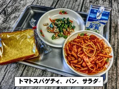 さて、本校の給食はといえば、先週の給食はトマトスパゲティ