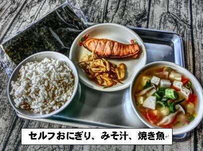 そして今日25日はセルフおにぎりとみそ汁と焼き魚でした。