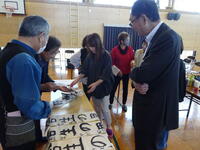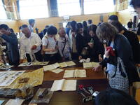 本日からちょうど50年前の10月13日は、本校の「開校100周年記念式典」があった日です。その時にタイムカプセルの埋蔵も行っており、開封の期日が50年後の10月13日としてありました。というわけで本日当時の在校生が集まってタイムカプセルの開封イベントがありました。50年前の小学生ですので現在は56才から62才くらいになっておられます。本日は40名ほどが集まってタイムカプセルを開封し入れてあった習字の作品や作文を見合って旧交を深めることができました。中に入っていたものは11月1日の記念式典でも展示します(教頭 米澤)