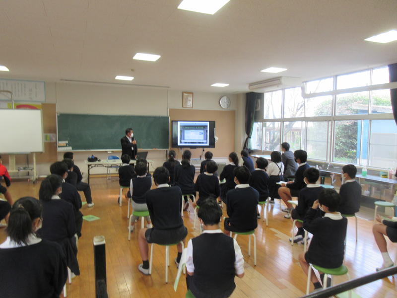 本年度はコロナ禍のため、5年生は「水俣に学ぶ肥後っ子教室」の実施ができませんでした。5年生はこれまで、多くの資料等を使って学習を進めてきました。今回、これまでの学習を深化充実させるために、梅田先生をお招きして講話をしていただきました(6年生も一緒に学習しました)。